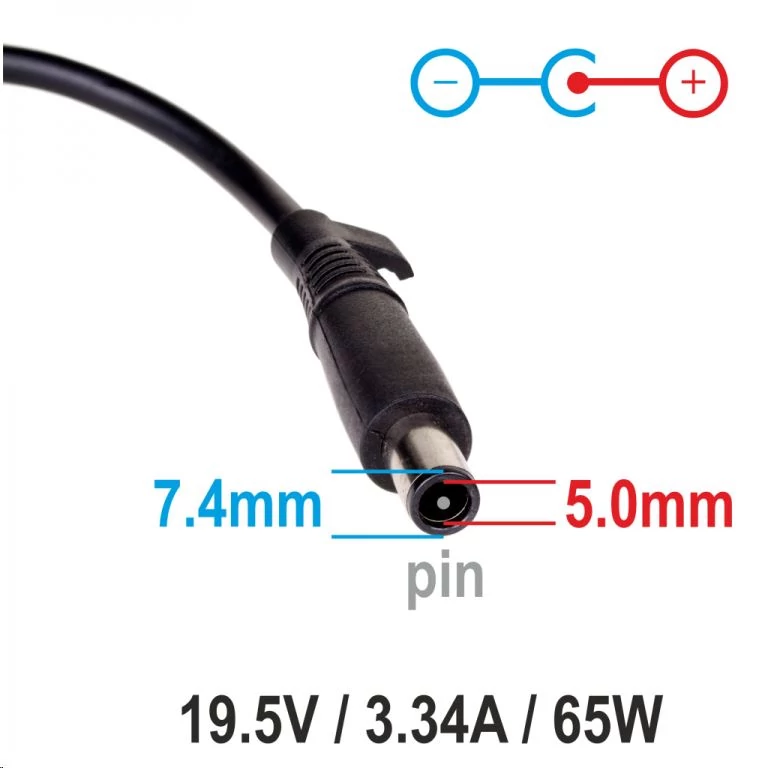 - Kimeneti csatlakozó: 7.4 x 5.0 mm + pin ( DELL )