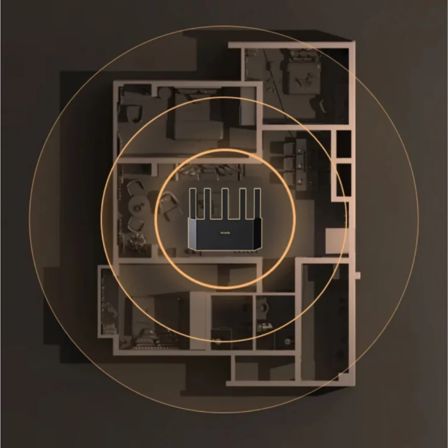 5 Külső, Nagy Nyereségű Antenna: Ez a megnövelt antennaszám (szemben a tipikus 3 vagy 4 antennás routerekkel) hatékonyan javítja a jelátvitelt és a vételi érzékenységet, kiterjesztve a stabil Wi-Fi 6 lefedettséget otthona minden sarkába.